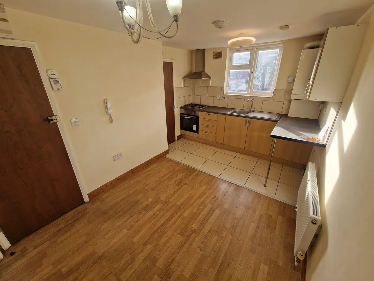 This spacious 2-bedroom first floor flat located on Frisby Rd, Leicester LE5 0DN, is available for rent at the competitive rate of £625 per calendar month (pcm). The property has been updated to offer a fresh and inviting living space, featuring a brand new bathroom and a contemporary open-plan kitchen and dining area. This layout is perfect for modern living, providing a social heart to the home that is both functional and stylish.