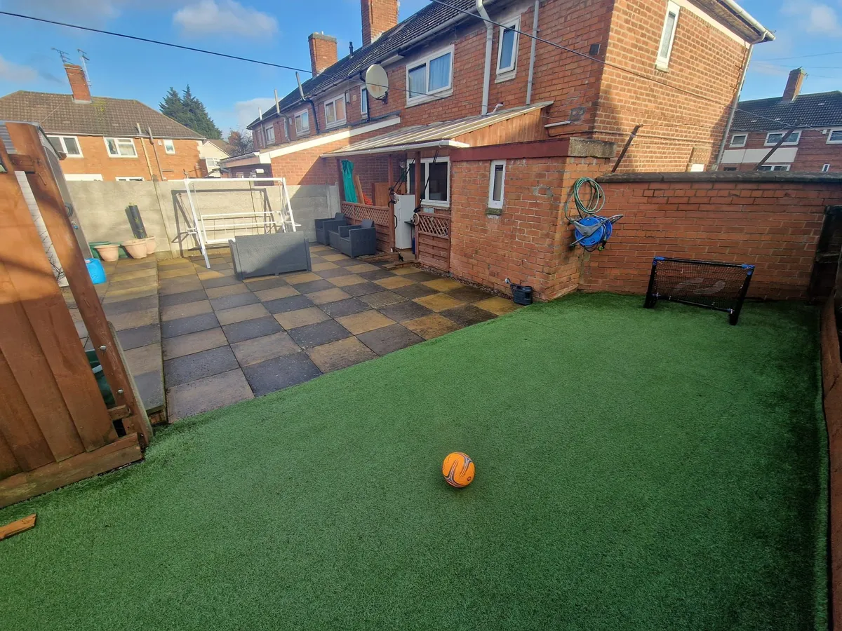 – Outdoor Space: The property boasts a beautiful private garden featuring low-maintenance astro turf grass and storage sheds. There is also a dedicated seating area perfect for BBQs. The front of the house includes an additional grass yard area.