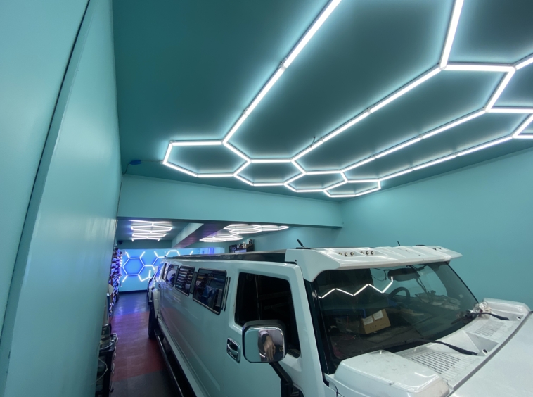 The Workshop: A vast, state-of-the-art technical bay equipped with heavy-duty lifts, precision alignment tools, and dedicated zones for clean-room tasks like vinyl wrapping.